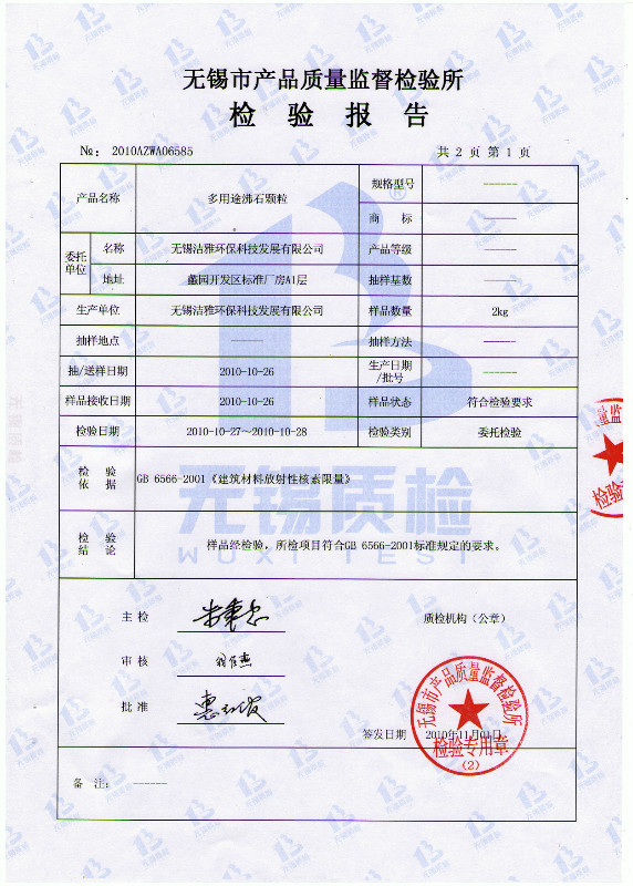 產品具有吸附性、陽離子交換性、催化性、耐酸耐堿及熱穩定性等主要性能。作為新一代的環保產品,可廣泛應用于廢氣處理、治理水污染、改良土壤、凈化養殖水體、處理放射性廢物。